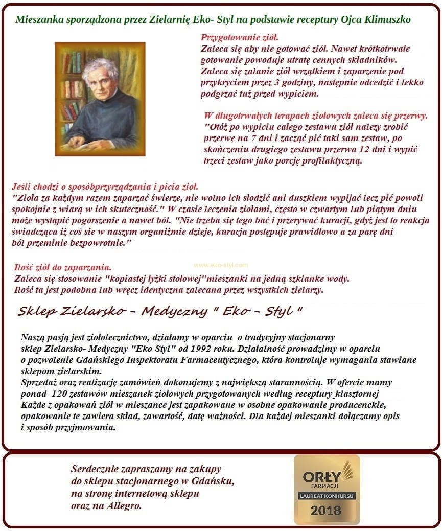Zestaw ziół opracowany na podstawie receptury O. Klimuszko.