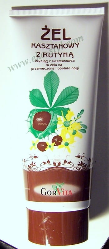 Żel z kasztanowcem i rutyną wzbogacony ekstraktami ziołowymi: Ginkgo Biloba, arniki, żywokostu i babki lancetowatej. Przeznaczony jest do pielęgnacji nabrzmiałych nóg, przemęczonych długotrwałą pozycją stojącą i siedzącą, ze skłonnością do sińców, pajączków i zastoin, które często towarzyszą problemom krążeniowym. Polecany dla osób z żylakami. Zawarta w składzie Allantoina i D-panthenol dobrze odżywia, nawilża i poprawia kondycję skóry oraz samopoczucie.